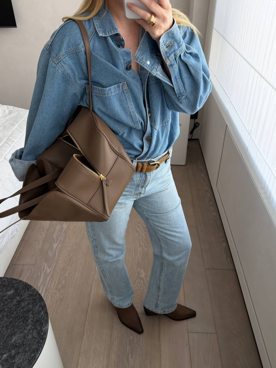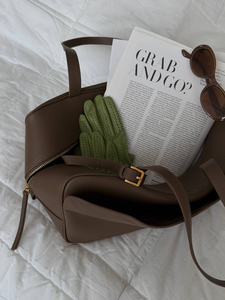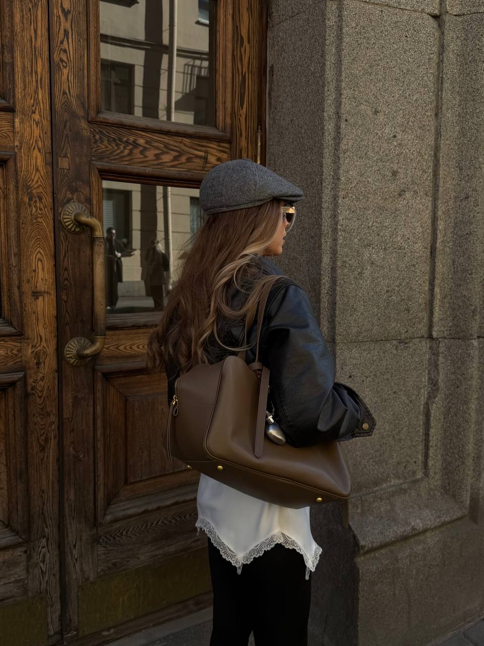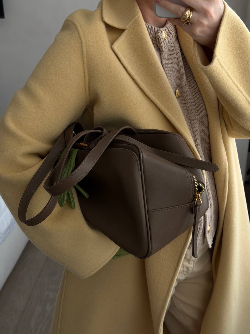 Слегка уловимая деталь — внешний карман. Он почти незаметен в силуэте, но добавляет сумке характер и делает её ещё более стильной и функциональной.
