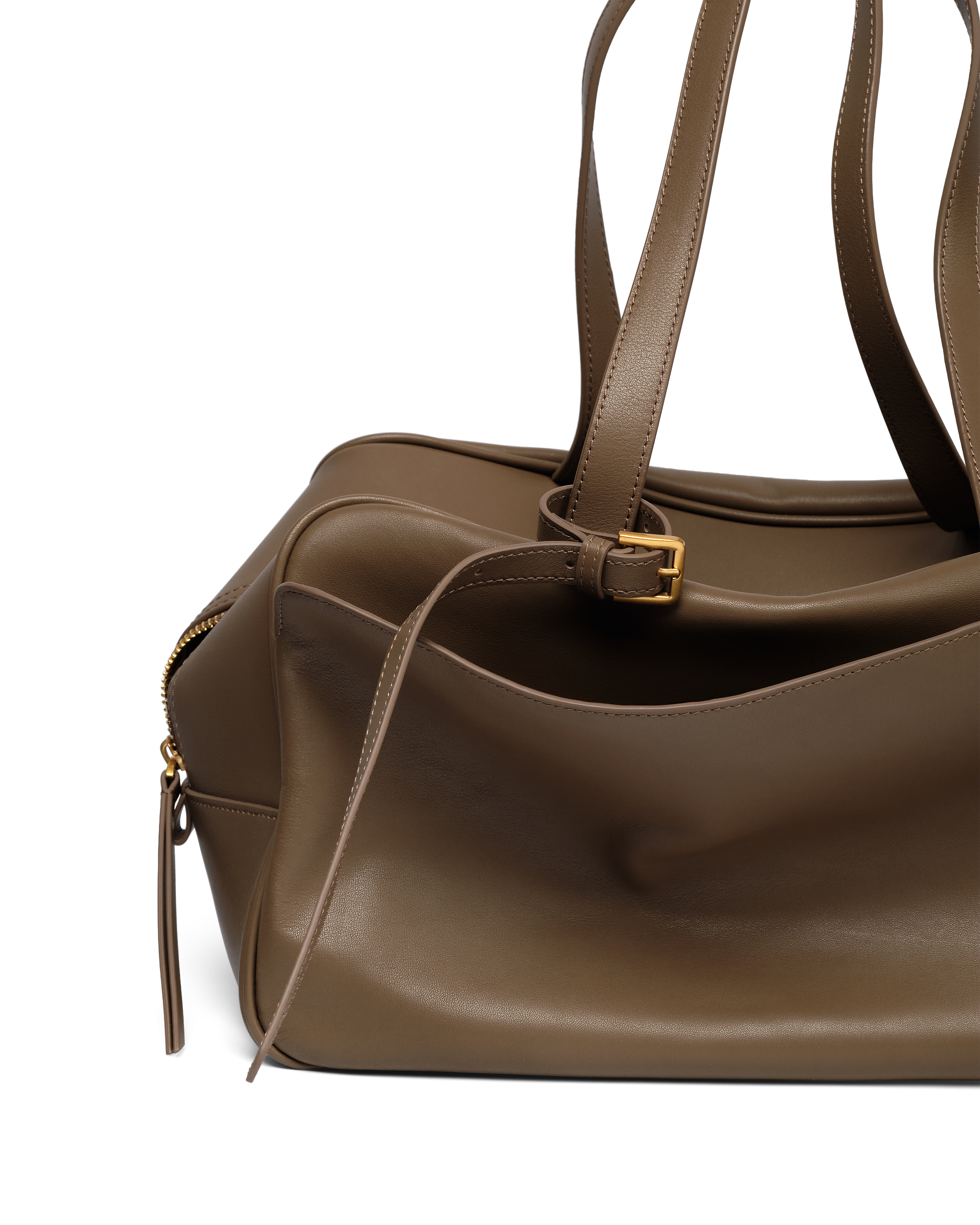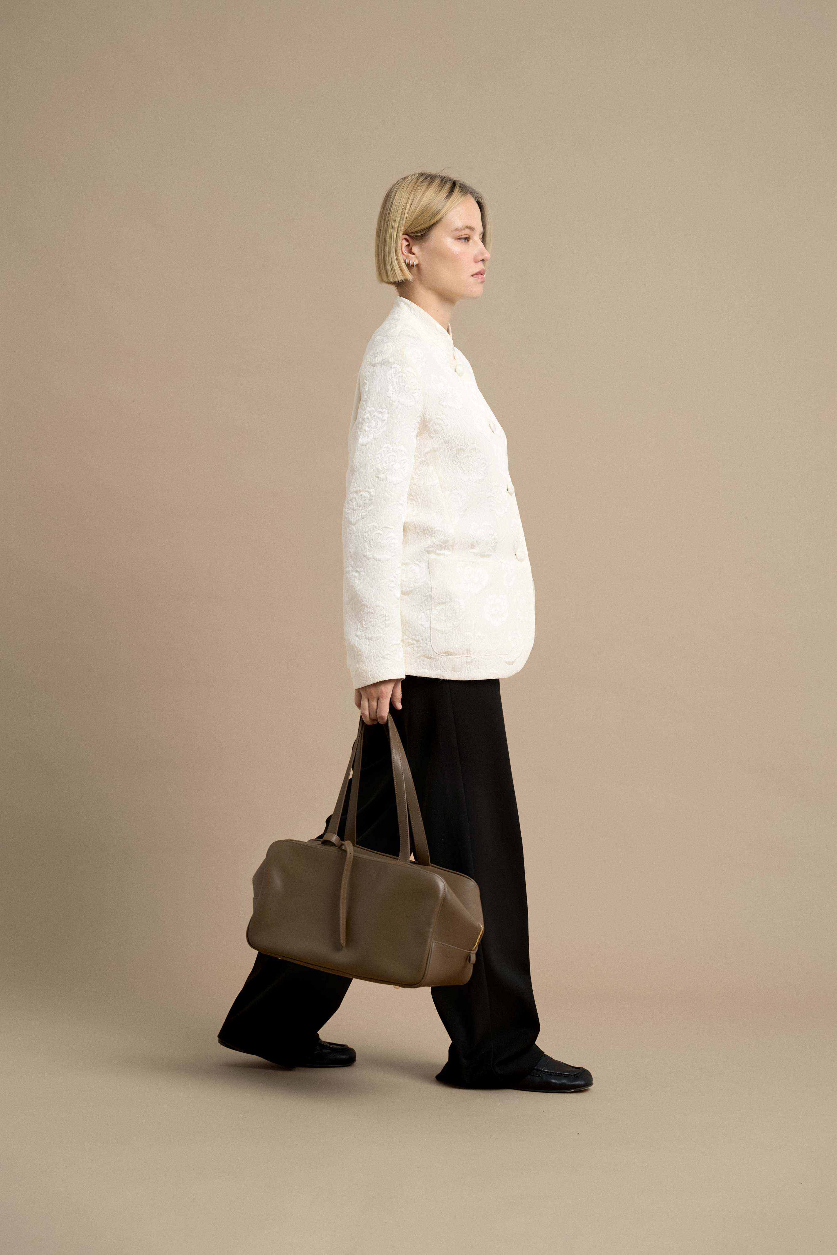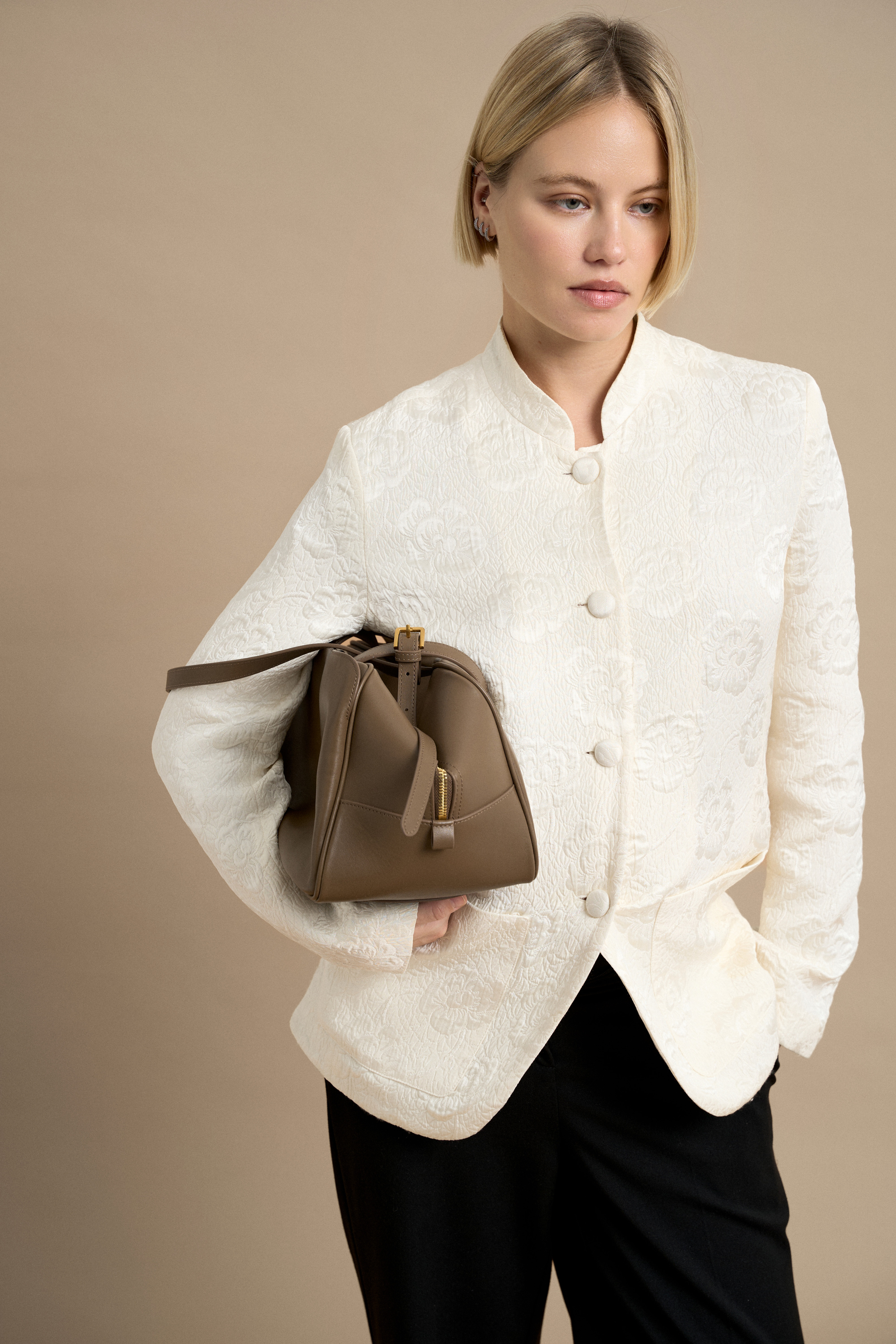 Чёткий силуэт сочетается с мягкостью гладкой кожи, благодаря чему сумка сохраняет форму, но остаётся живой и пластичной в движении. ARC удобно носить в руке или на плече — она органично вписывается в повседневный ритм и легко дополняет образ.