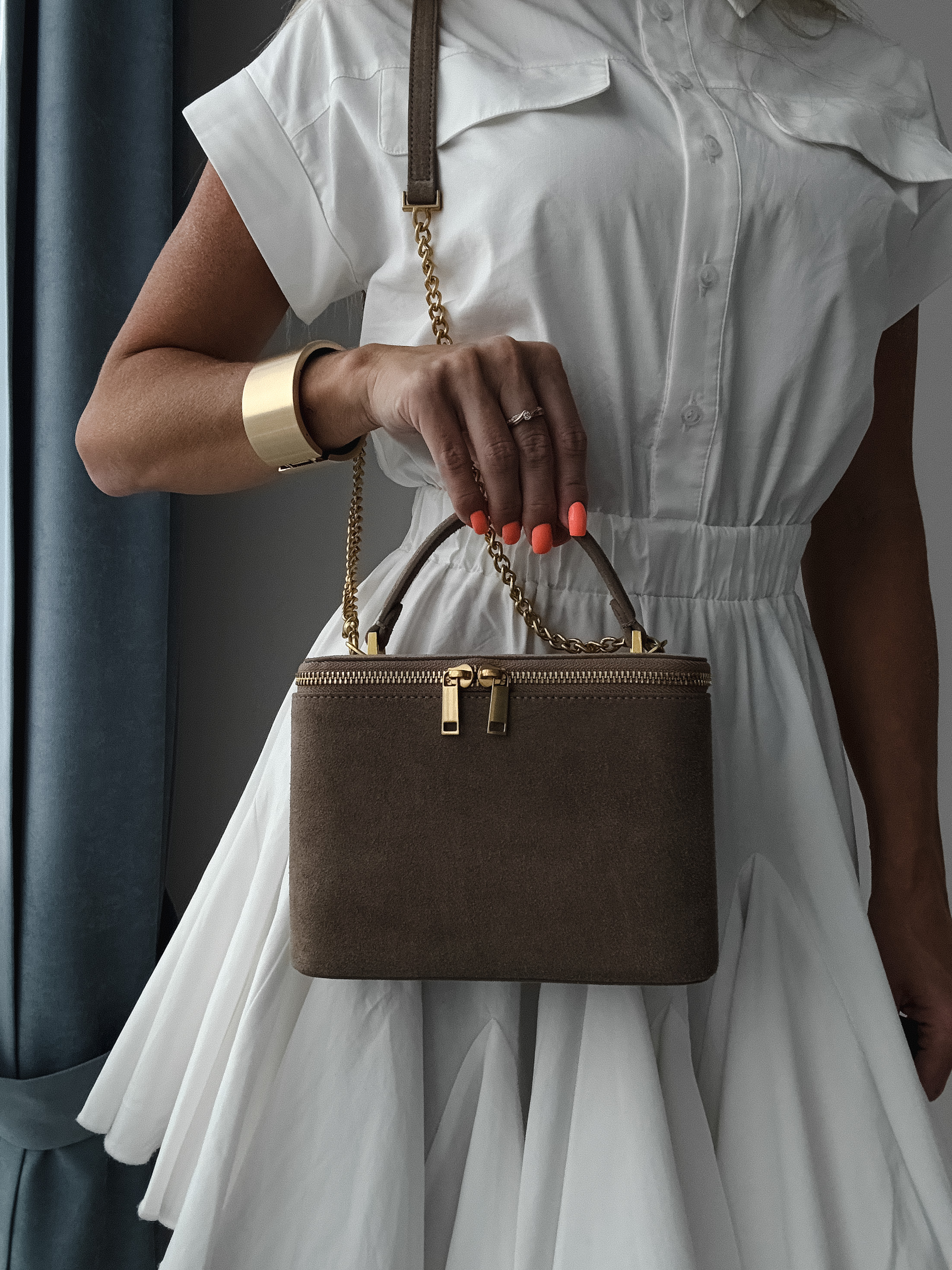 Элегантная и лаконичная сумка-кейc CONNIE выполнена из высококачественной замши. Эта модель идеально сочетает в себе эстетику минимализма и функциональность, что делает её универсальным аксессуаром для повседневных и вечерних образов.