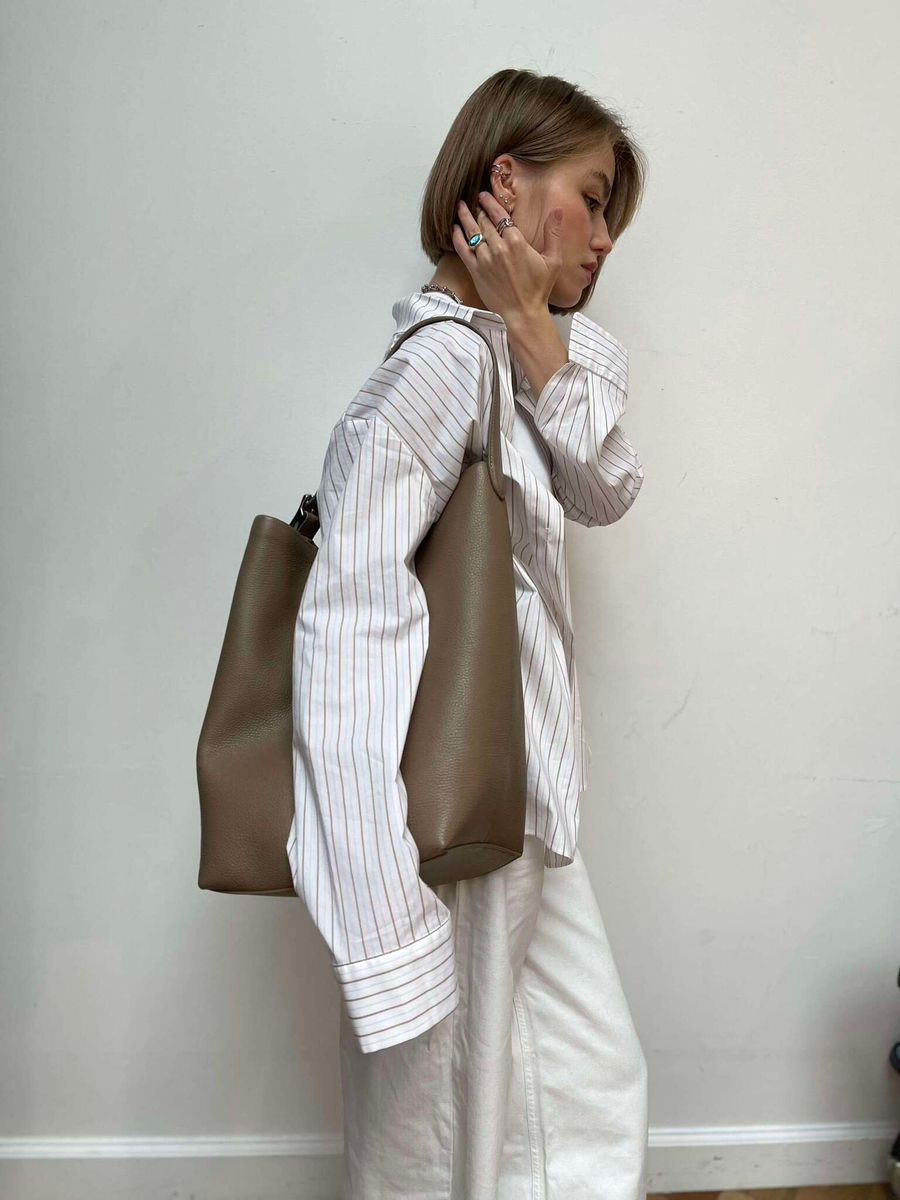 В комплекте с шоппером идет небольшой органайзер из зернистой кожи, который можно носить как отдельную сумочку на цепочке или использовать как косметичку.