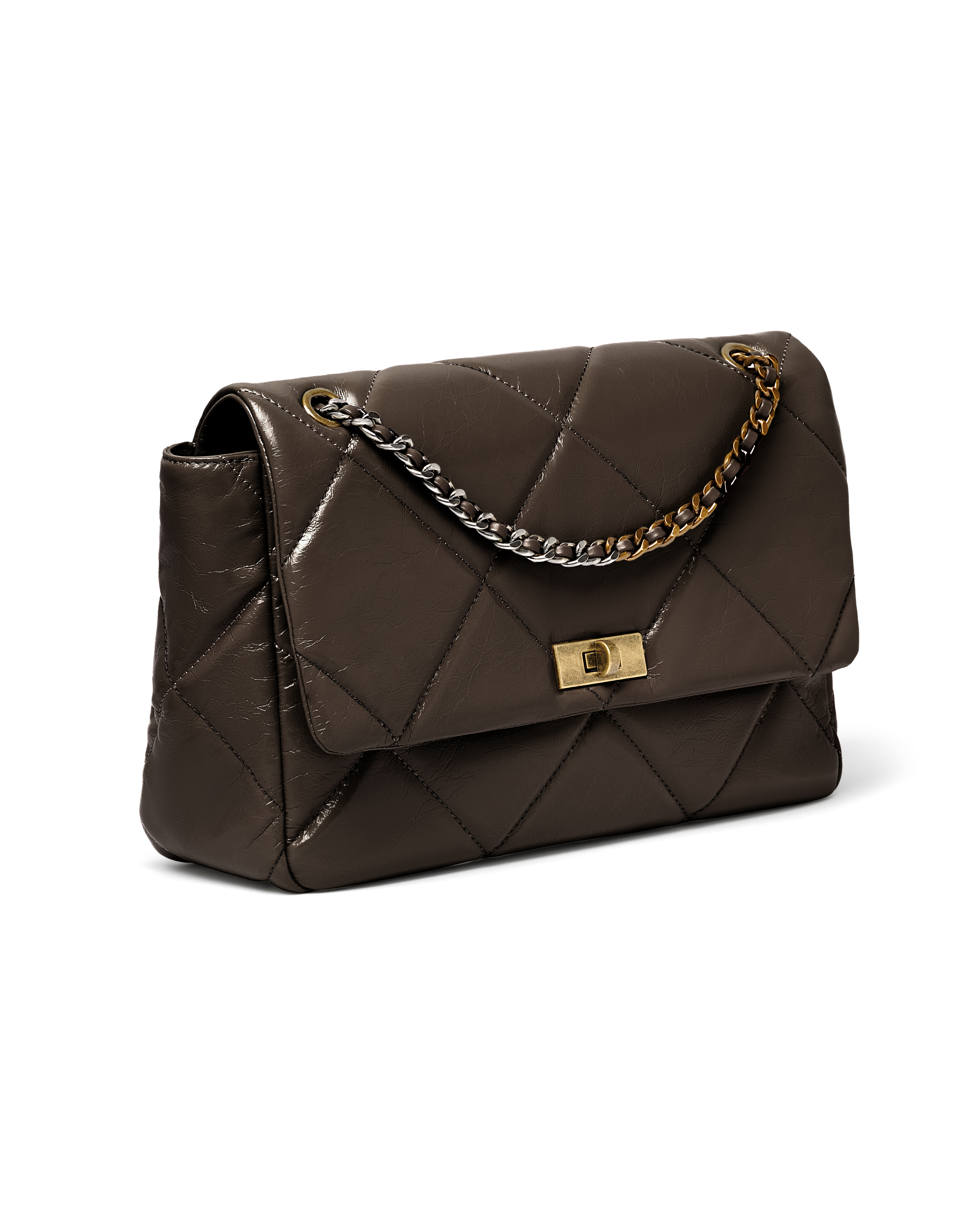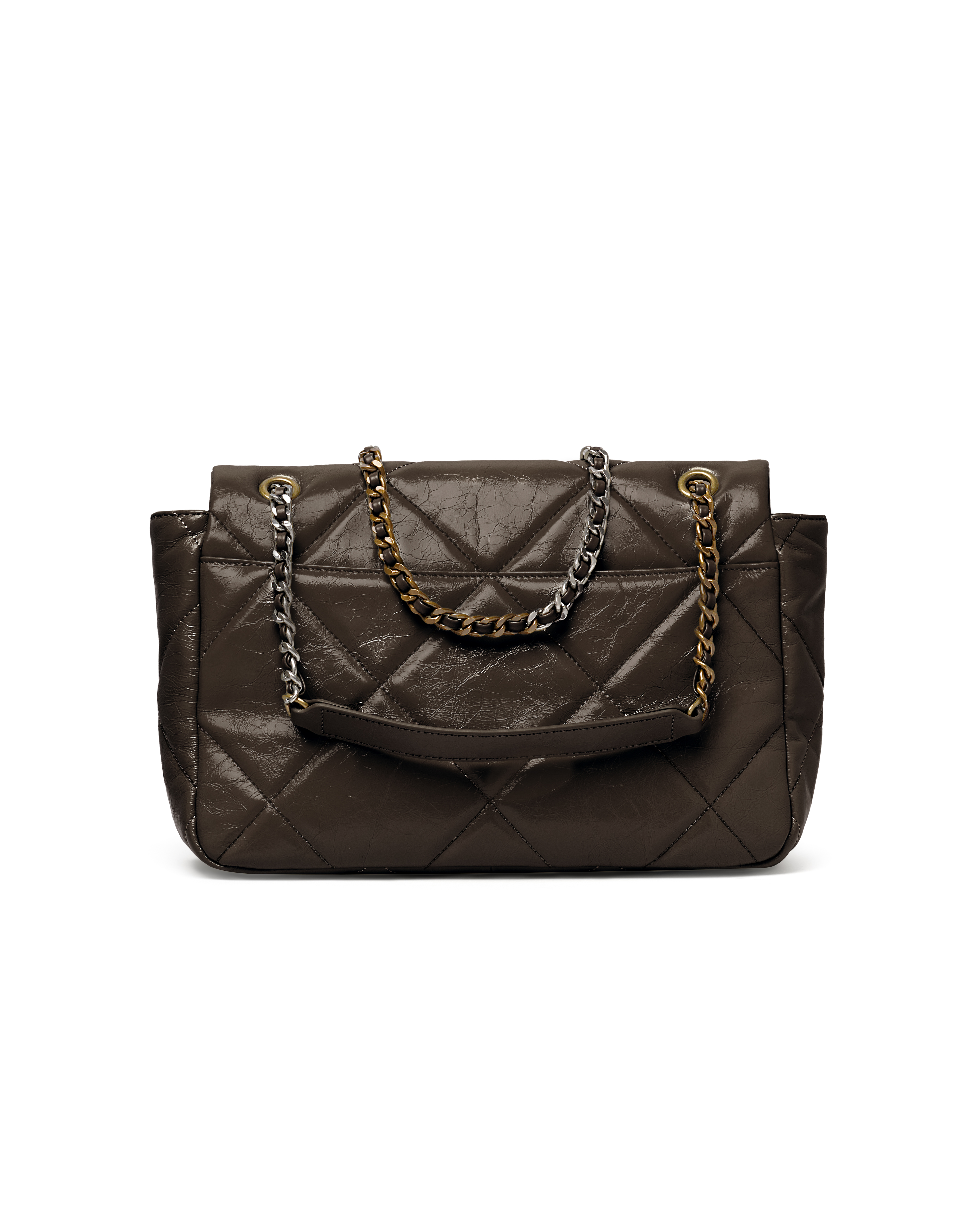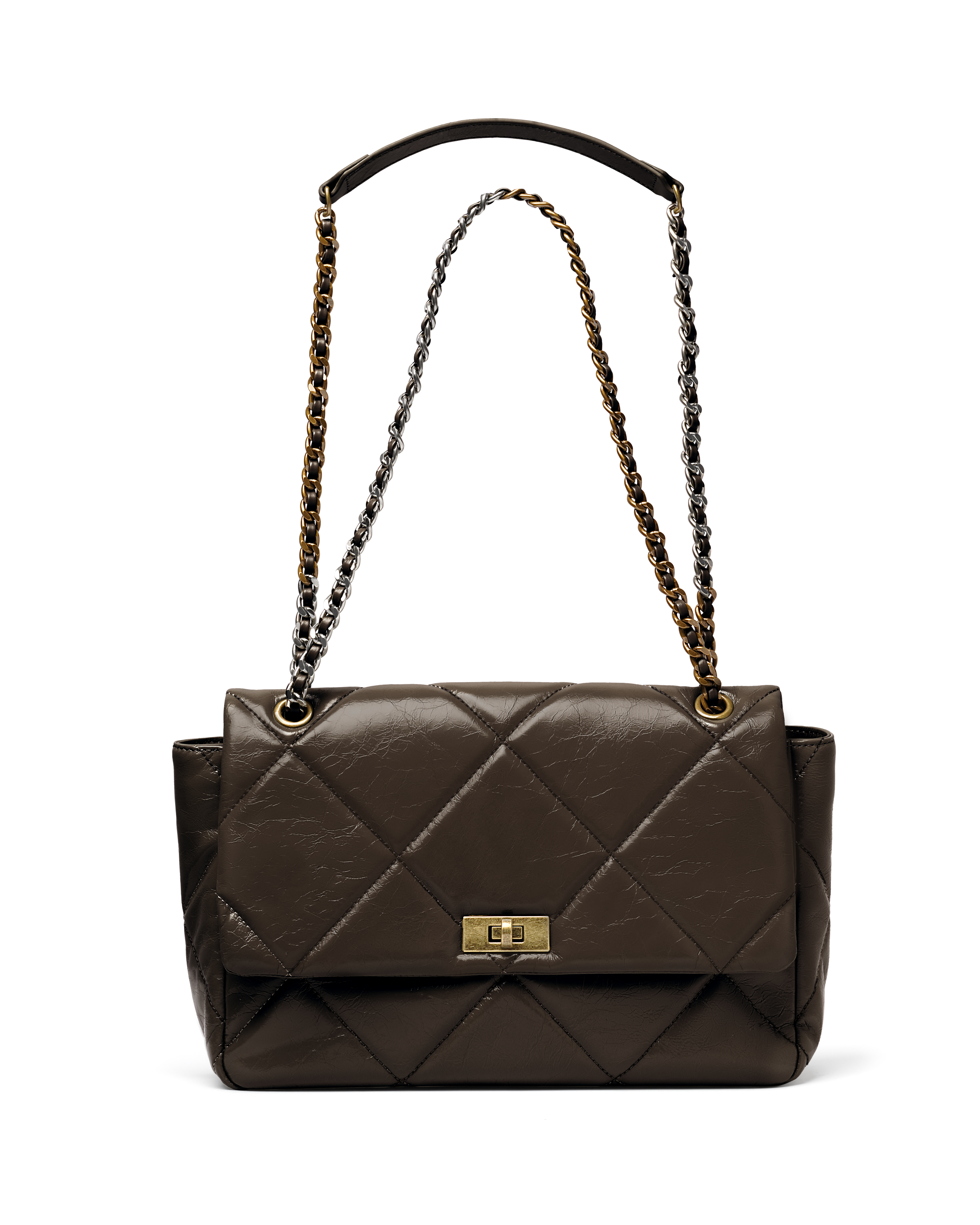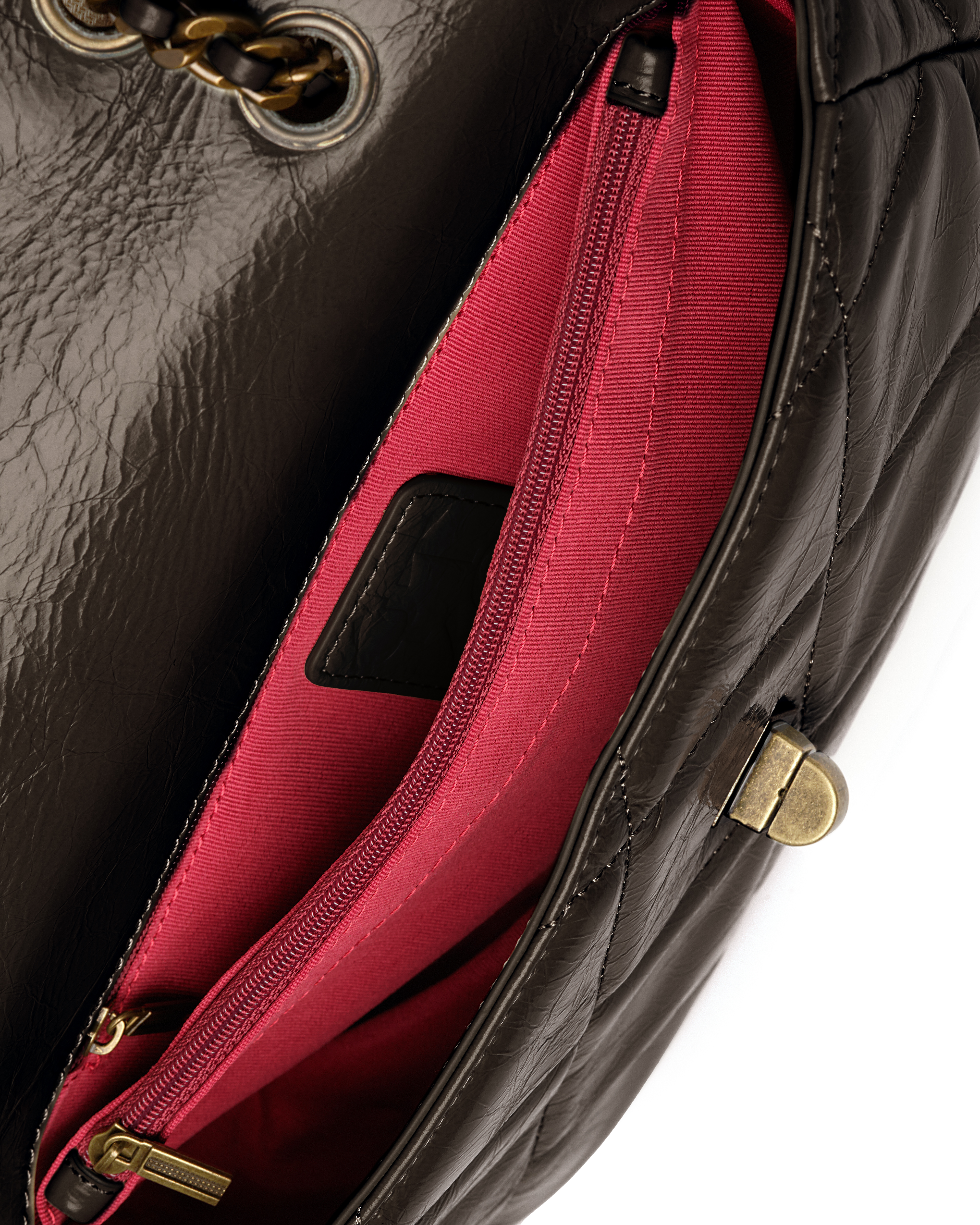Нестареющая классика в современном исполнении. Мягкая, невероятно приятная на ощупь кожа с винтажной обработкой. Крупная стильная стежка. Прочная дорогая фурнитура. Цепочка, сочетающая в себе два оттенка: черненое серебро и бронза. Удобное внутреннее оснащение. Это все про модель KELLY.