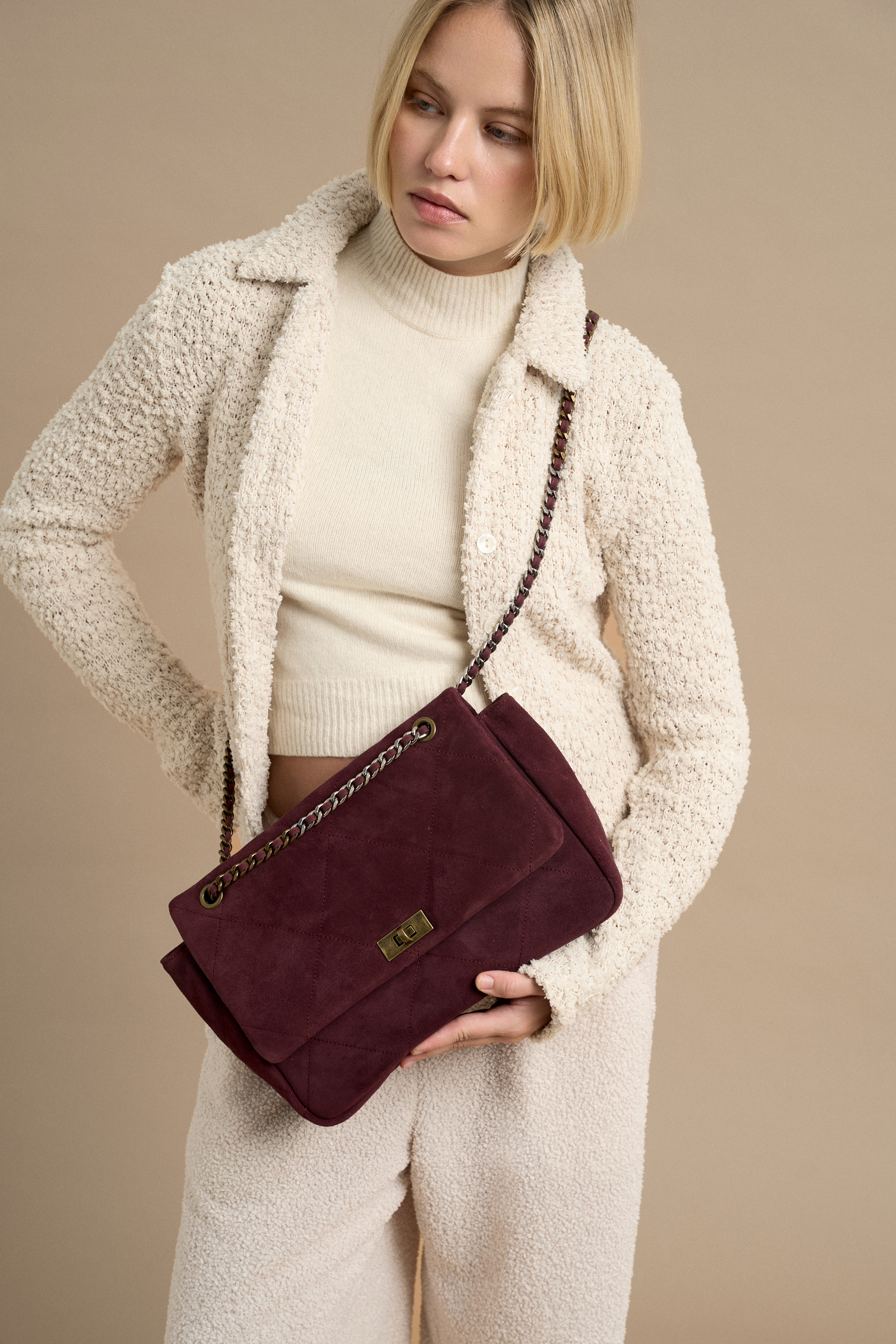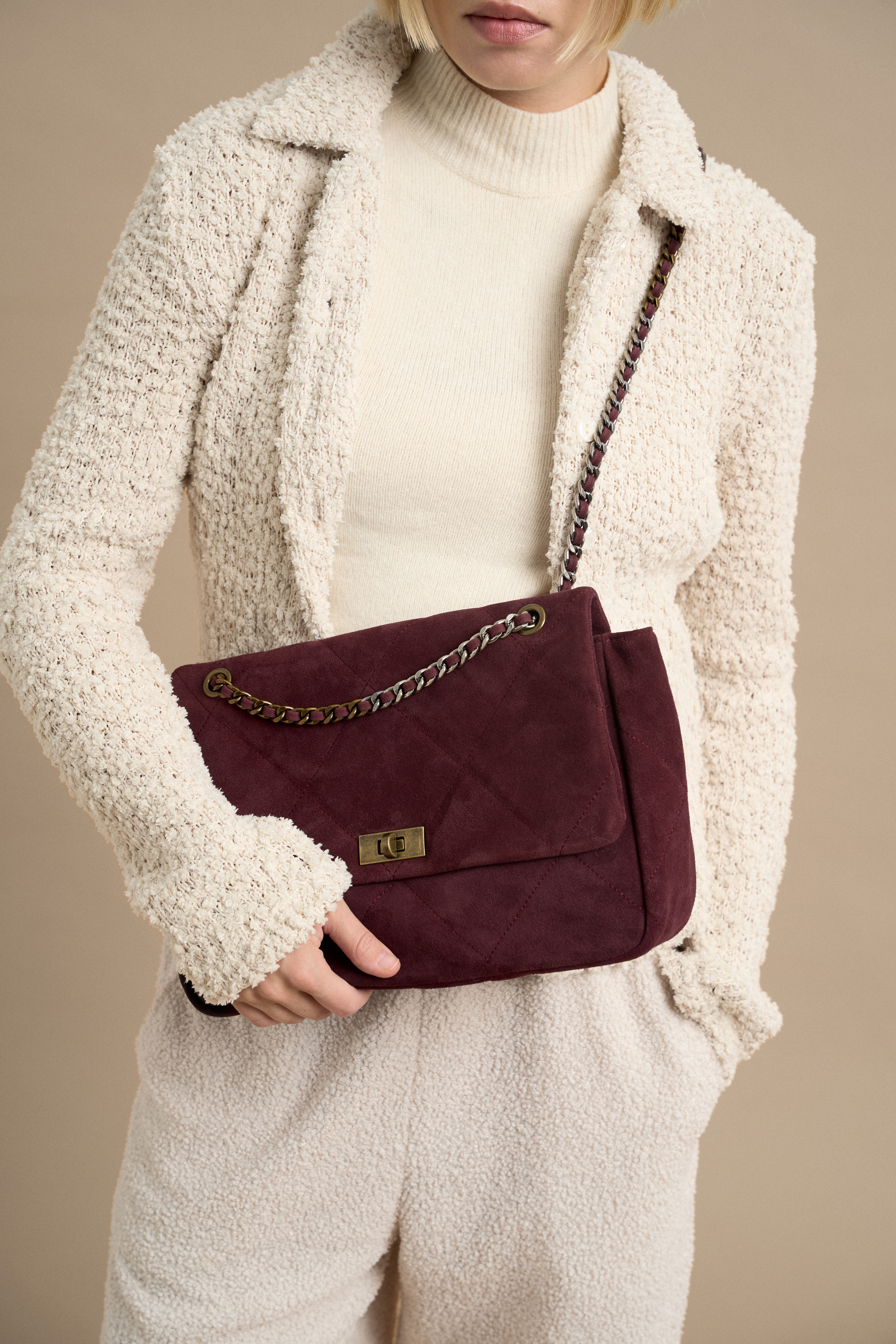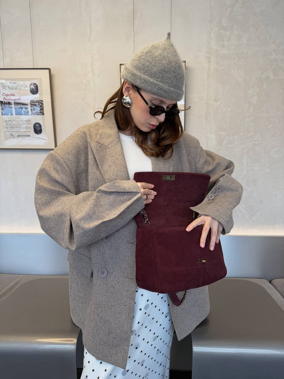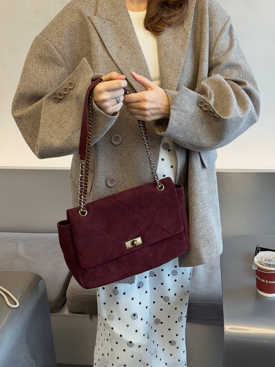 Нестареющая классика в современном исполнении. Мягкая, невероятно приятная на ощупь замша. Крупная стильная стежка. Прочная дорогая фурнитура. Цепочка, сочетающая в себе два оттенка: черненое серебро и бронза. Удобное внутреннее оснащение. Это все про модель KELLY.