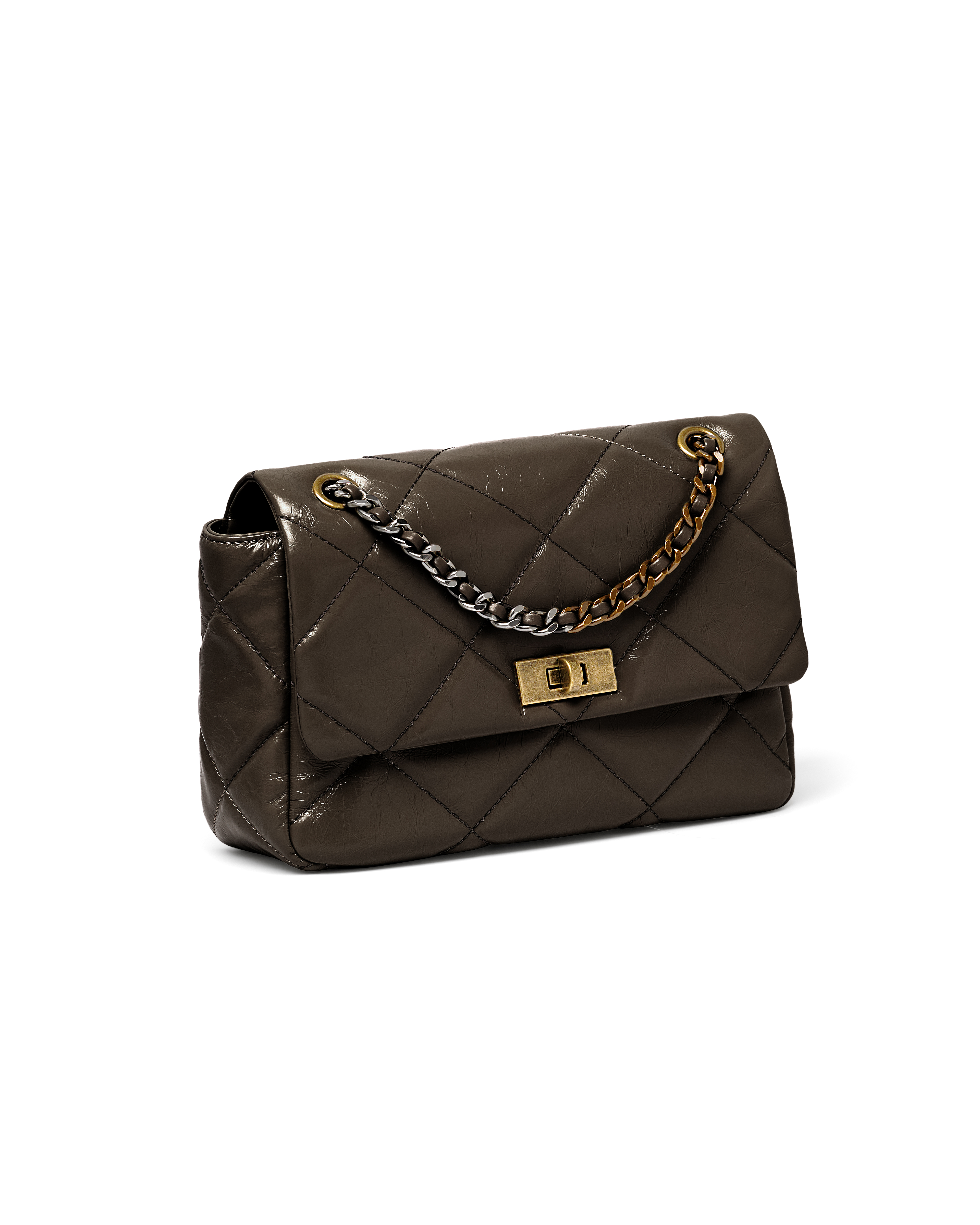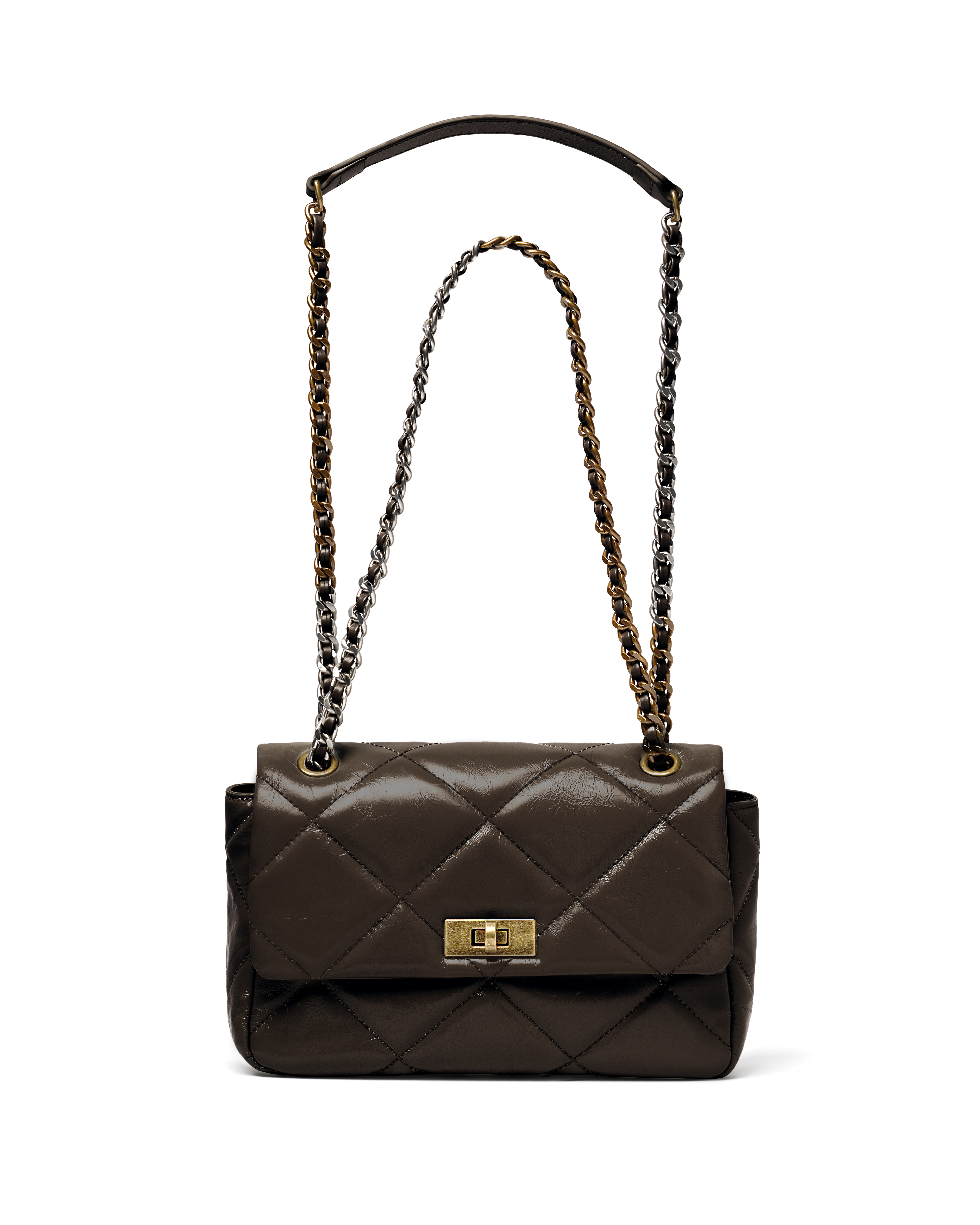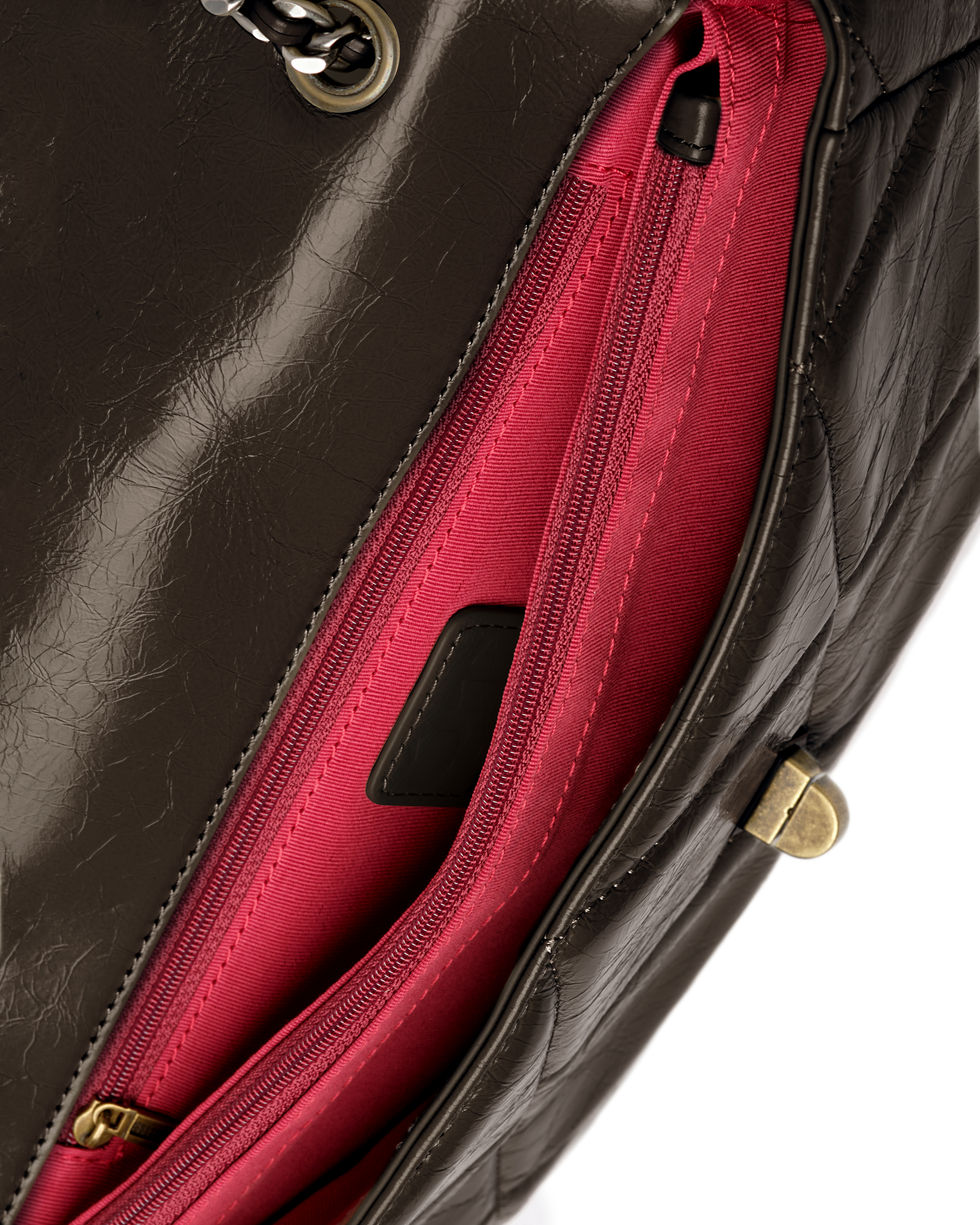 Нестареющая классика в современном исполнении. Мягкая, невероятно приятная на ощупь кожа с винтажной обработкой. Крупная стильная стежка. Прочная дорогая фурнитура. Цепочка, сочетающая в себе два оттенка: черненое серебро и бронза. Удобное внутреннее оснащение. Это все про модель KELLY.