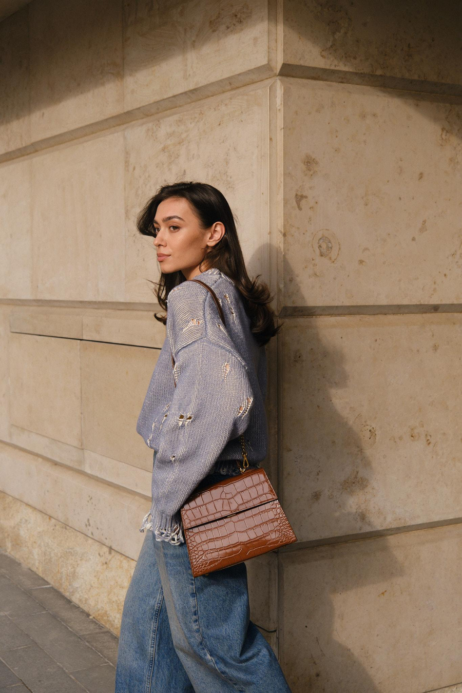 Эта модель выполнена из кожи с отделкой “крокодил” и добавит шика к любому вашему образу. Не бойтесь экспериментов и носите эту малышку не только с элегантными и классическими образами, но и с повседневным и спортивным стилем. Сумка с короткой ручкой и съёмным регулируемым плечевым ремнем закрывается клапаном на элегантный слегка заметный замок.