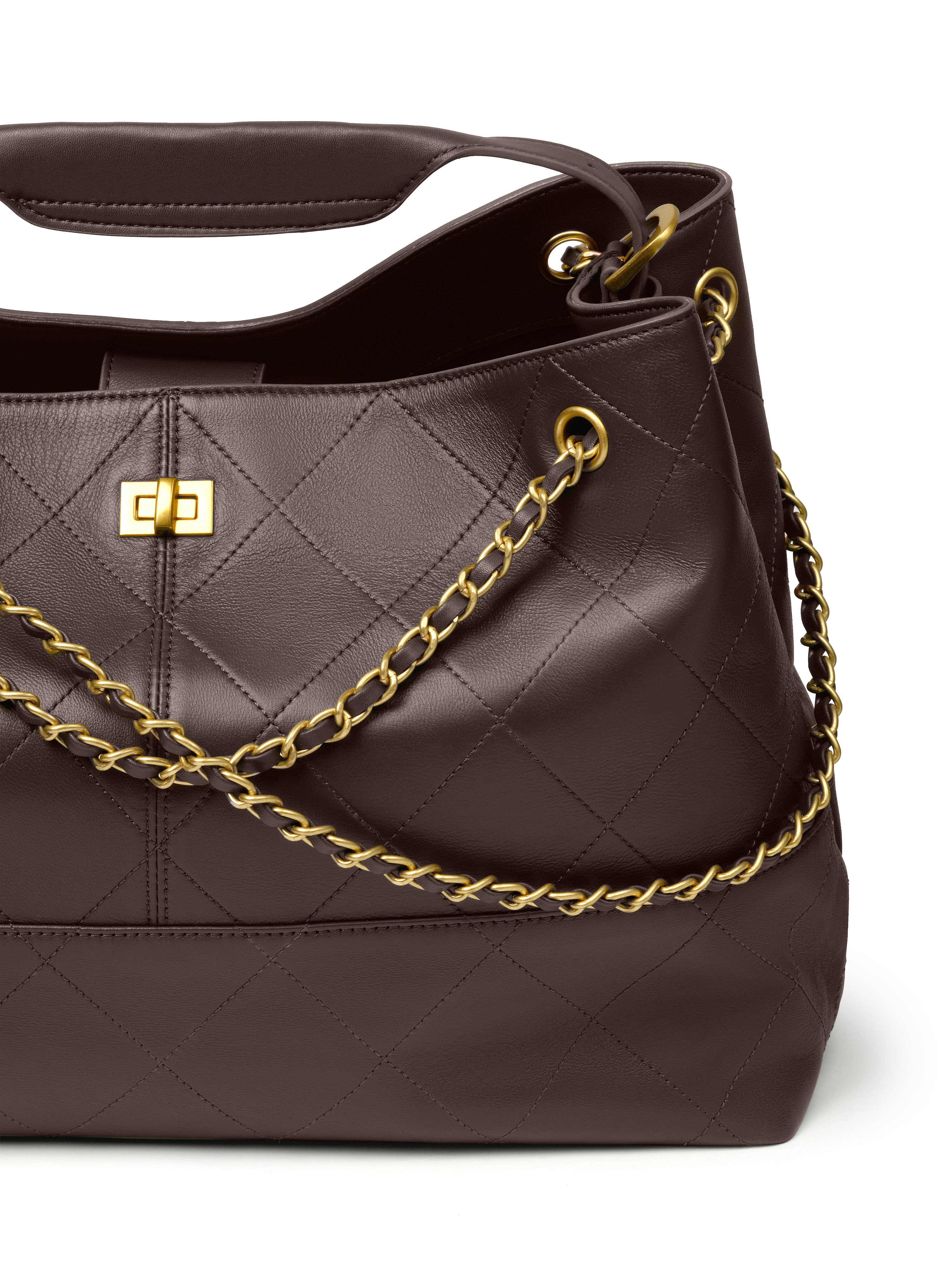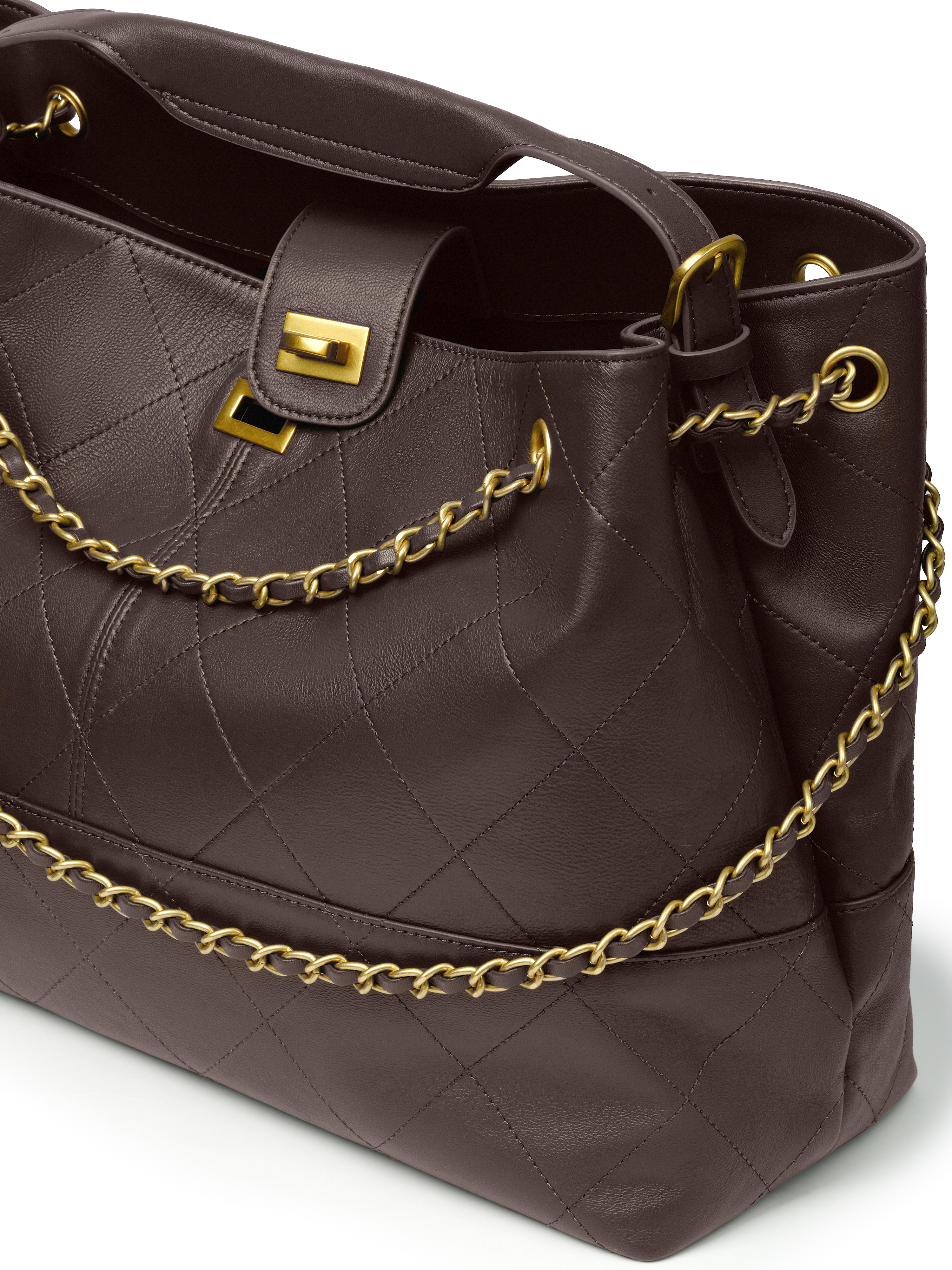 MAISON — выразительная и современная интерпретация классической формы, созданная для динамичного ритма города. Чёткая геометрия стёжки, мягкая кожа и акцентная фурнитура формируют эстетику, в которой сочетаются комфорт и уверенный стиль.
