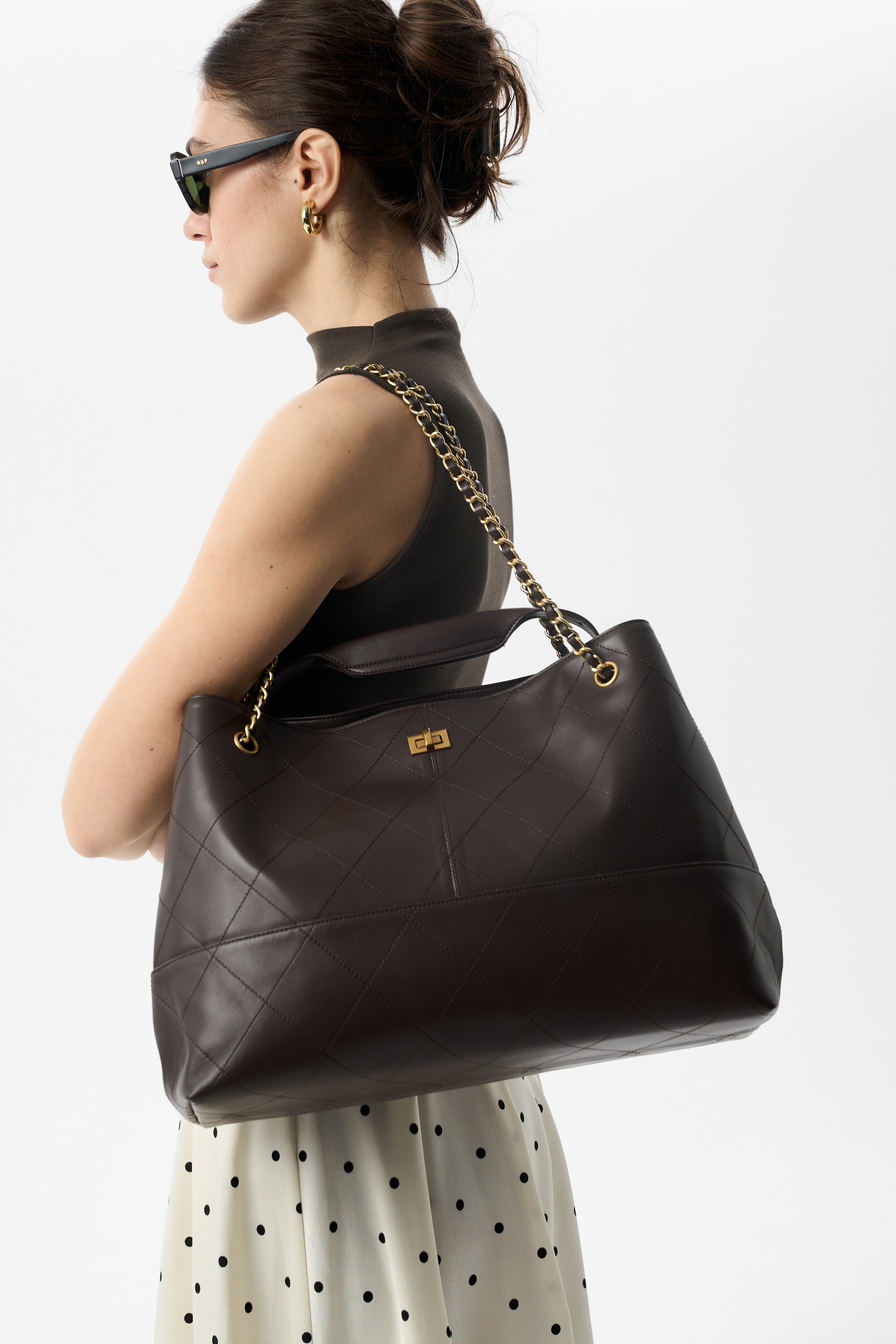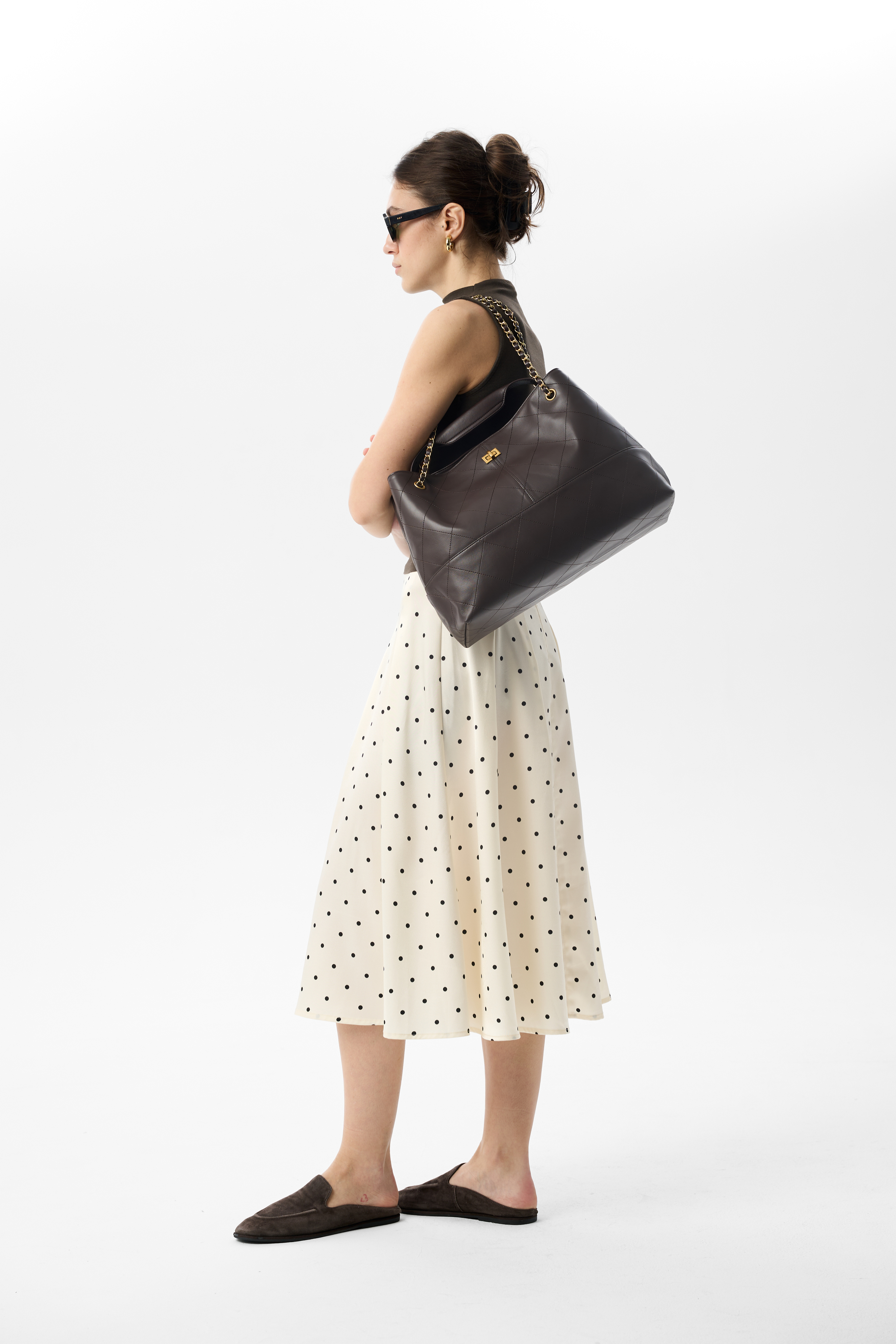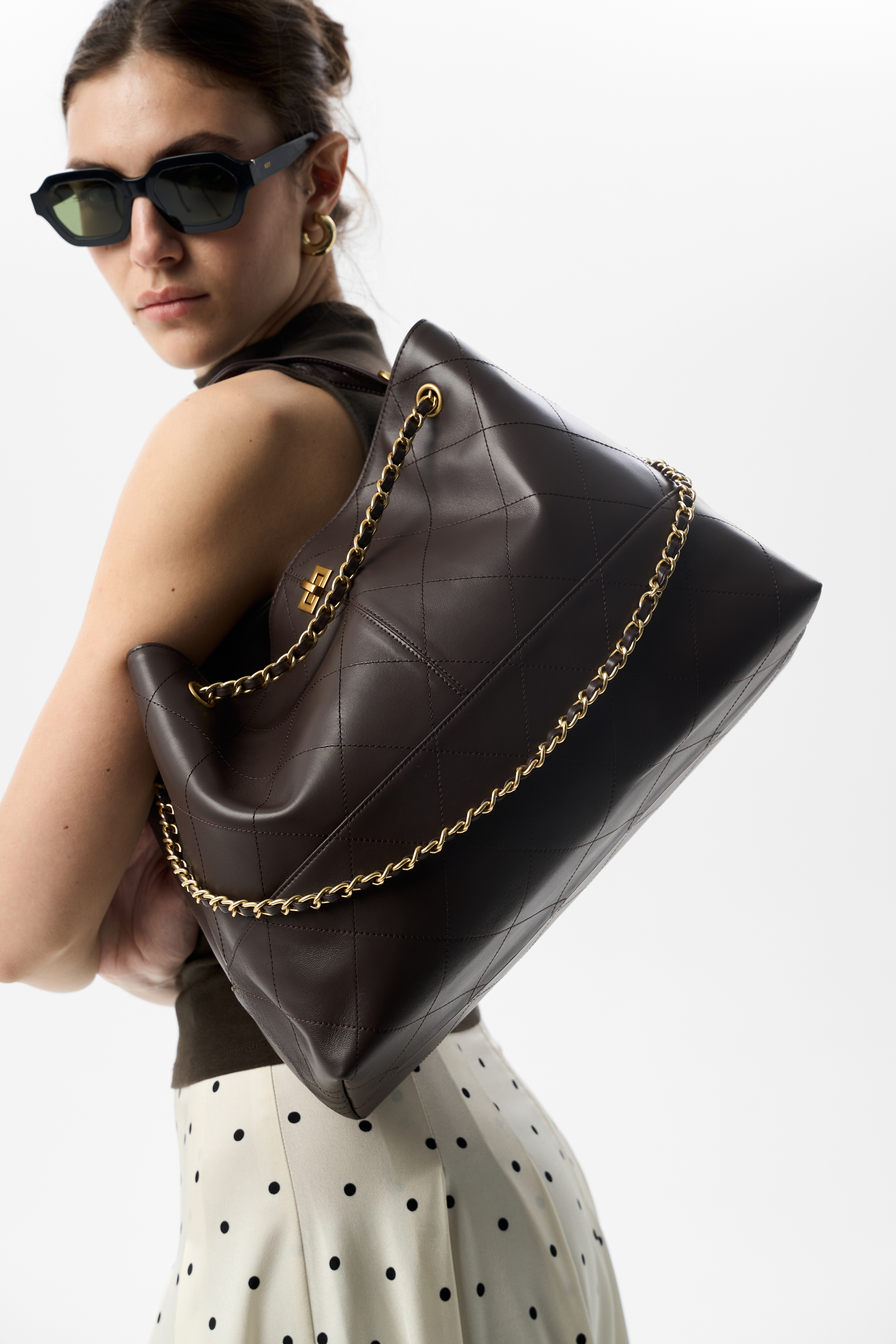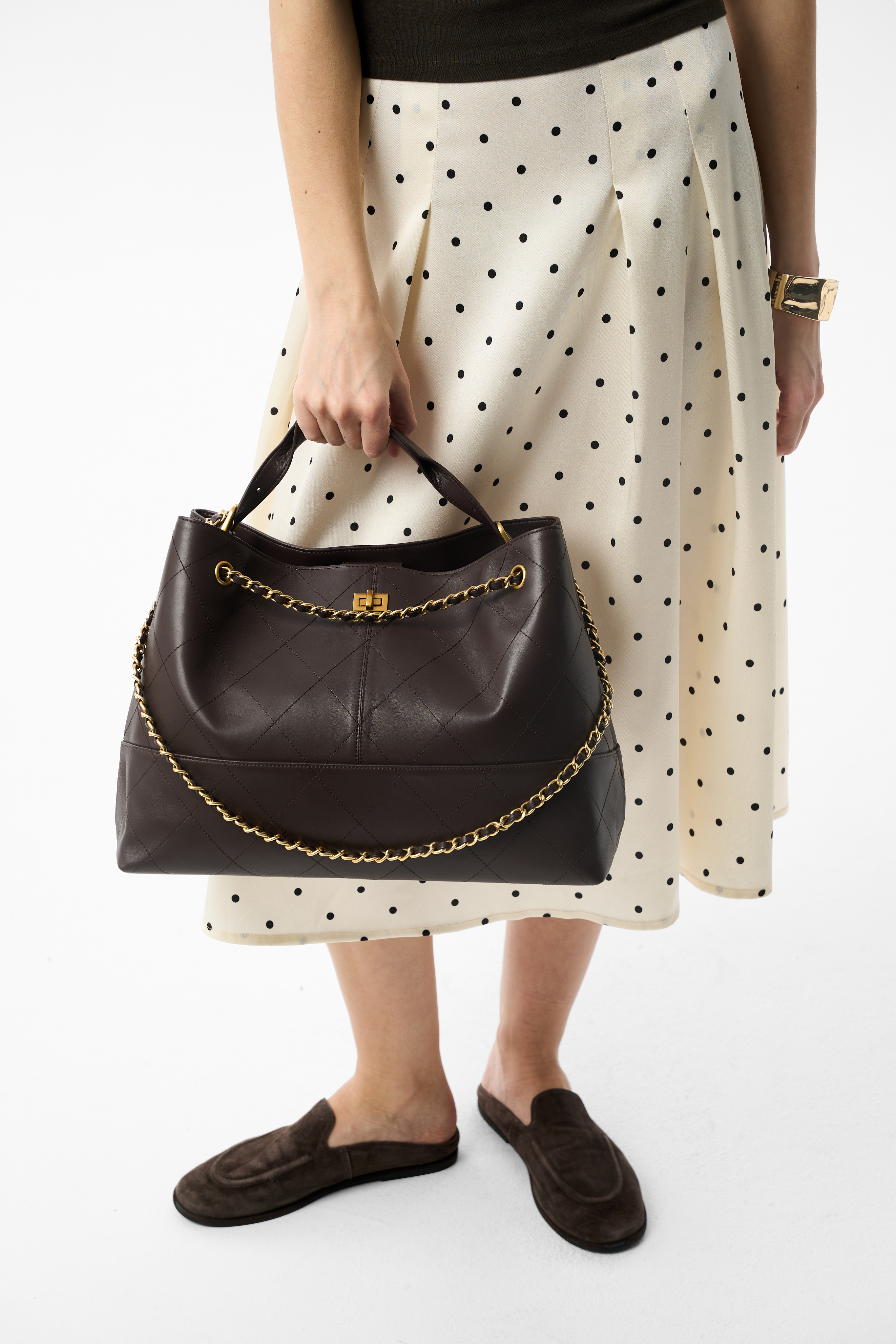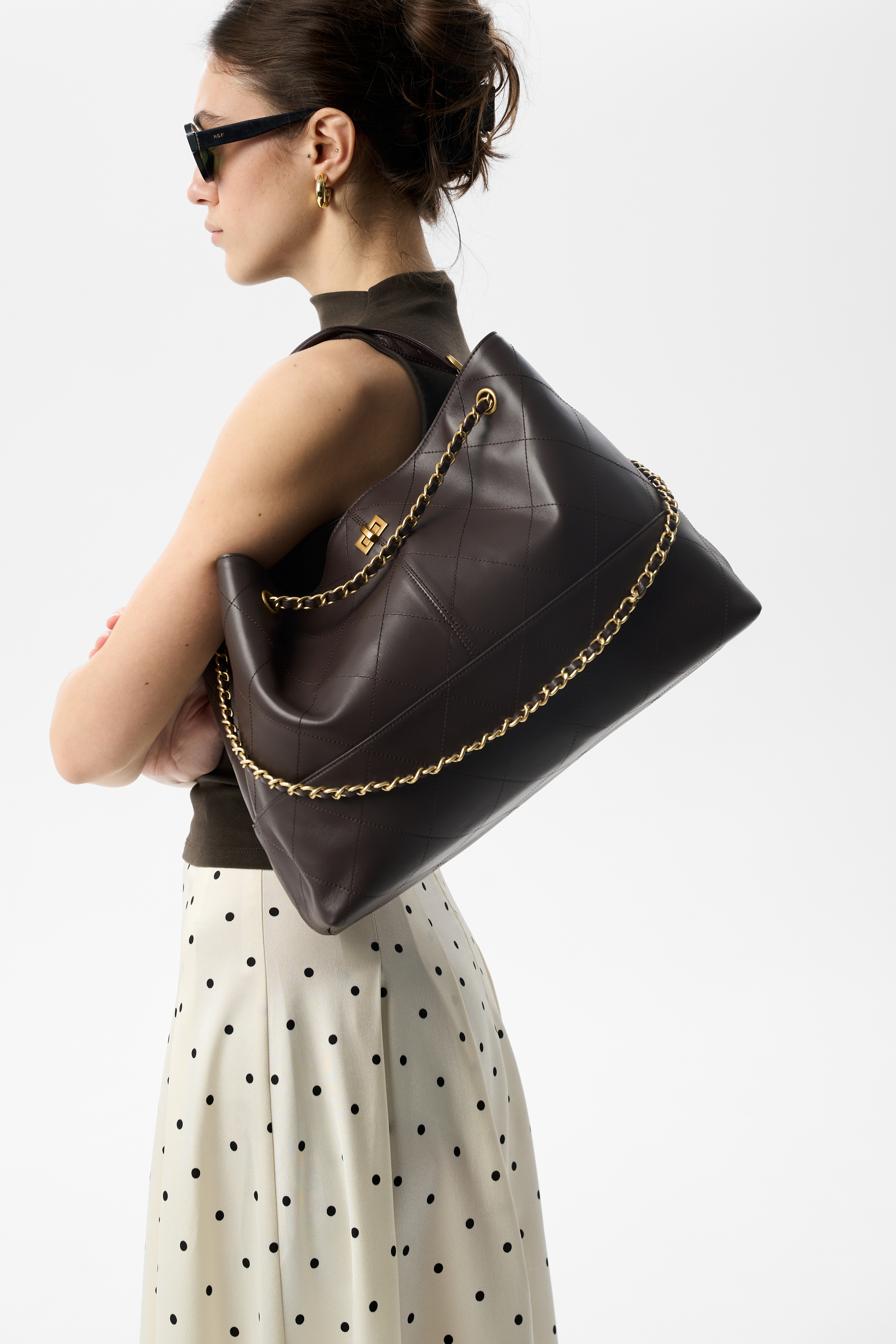 Лёгкая, структурная и вместительная, MAISON становится идеальным решением для тех, кто выбирает продуманность без компромиссов. Удобная регулируемая ручка позволяет носить модель в разных вариантах, а длинная декоративная цепь добавляет сумке характер и гибкость в образах — от повседневных до вечерних.