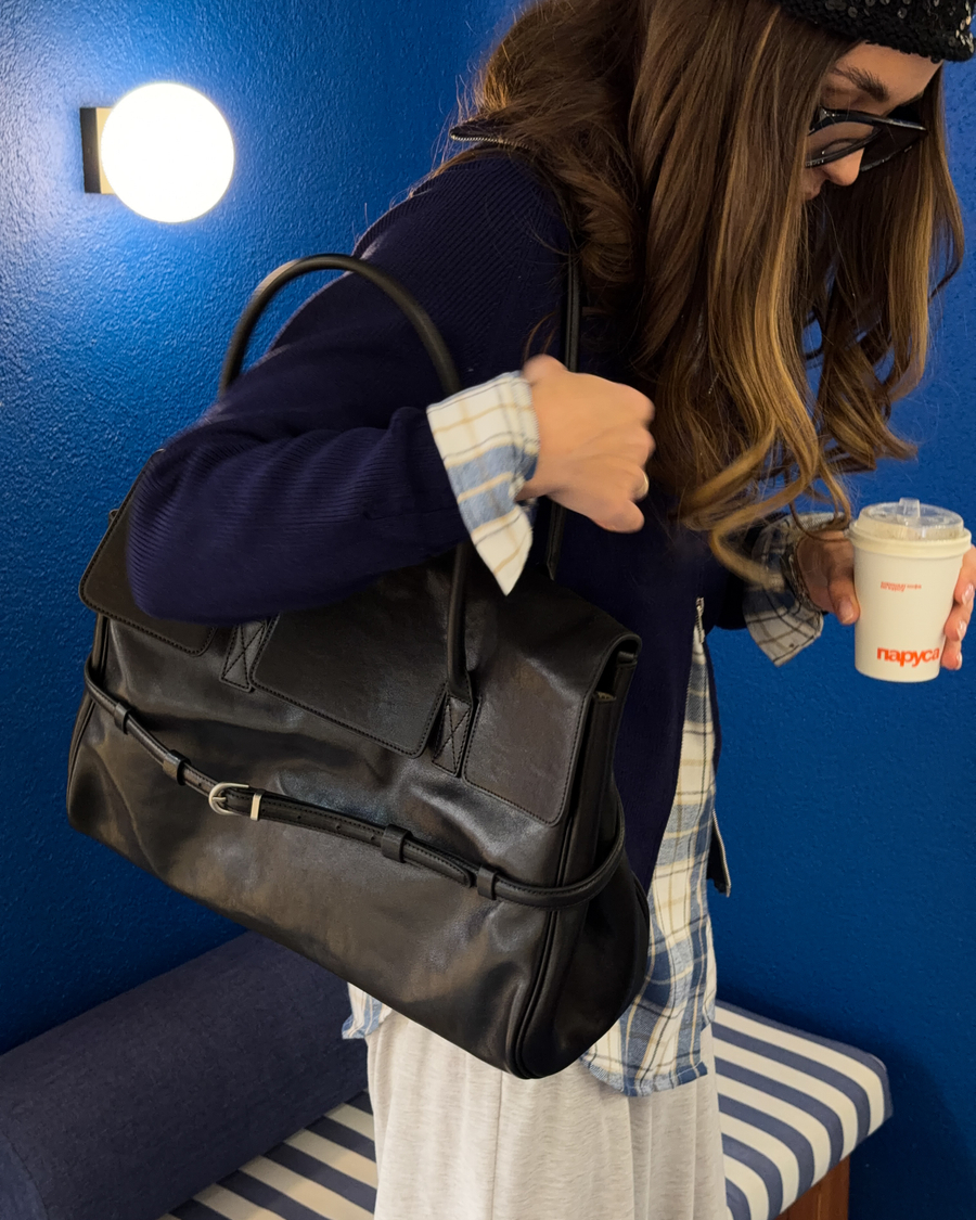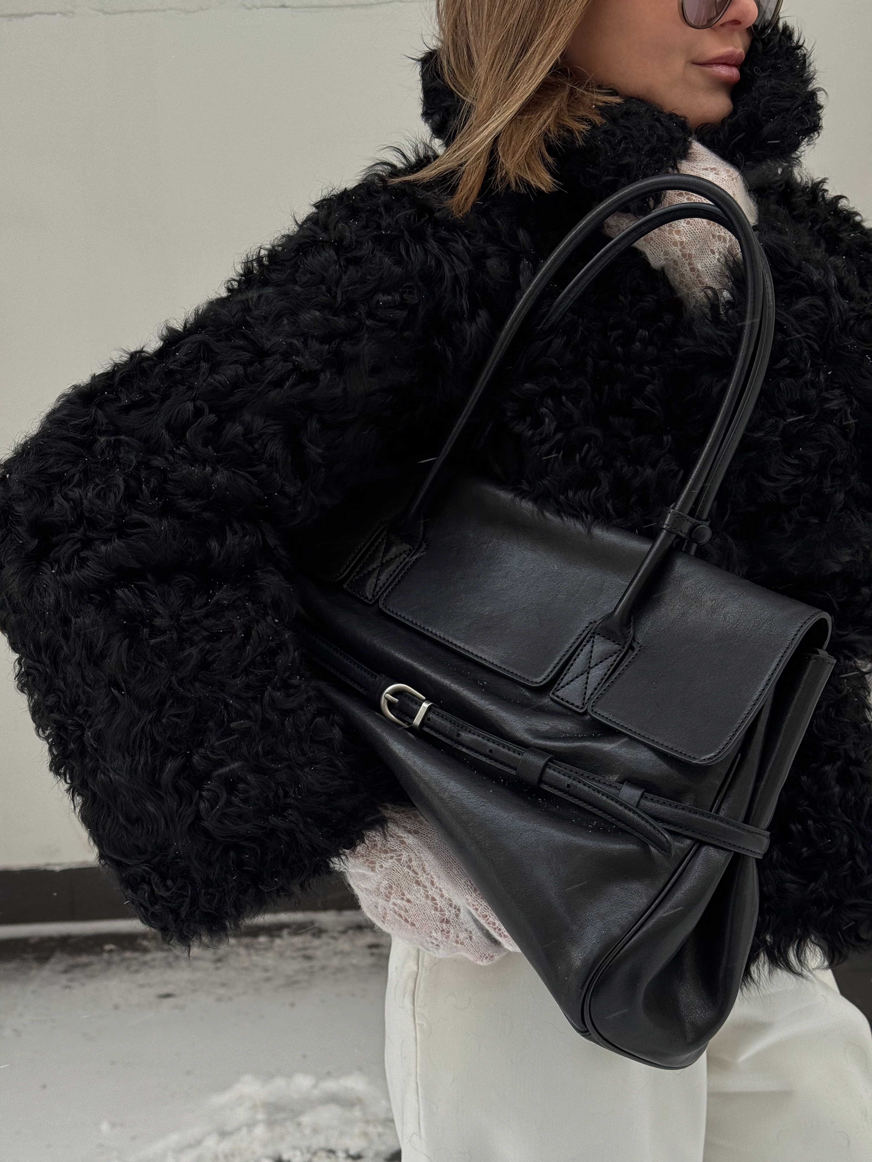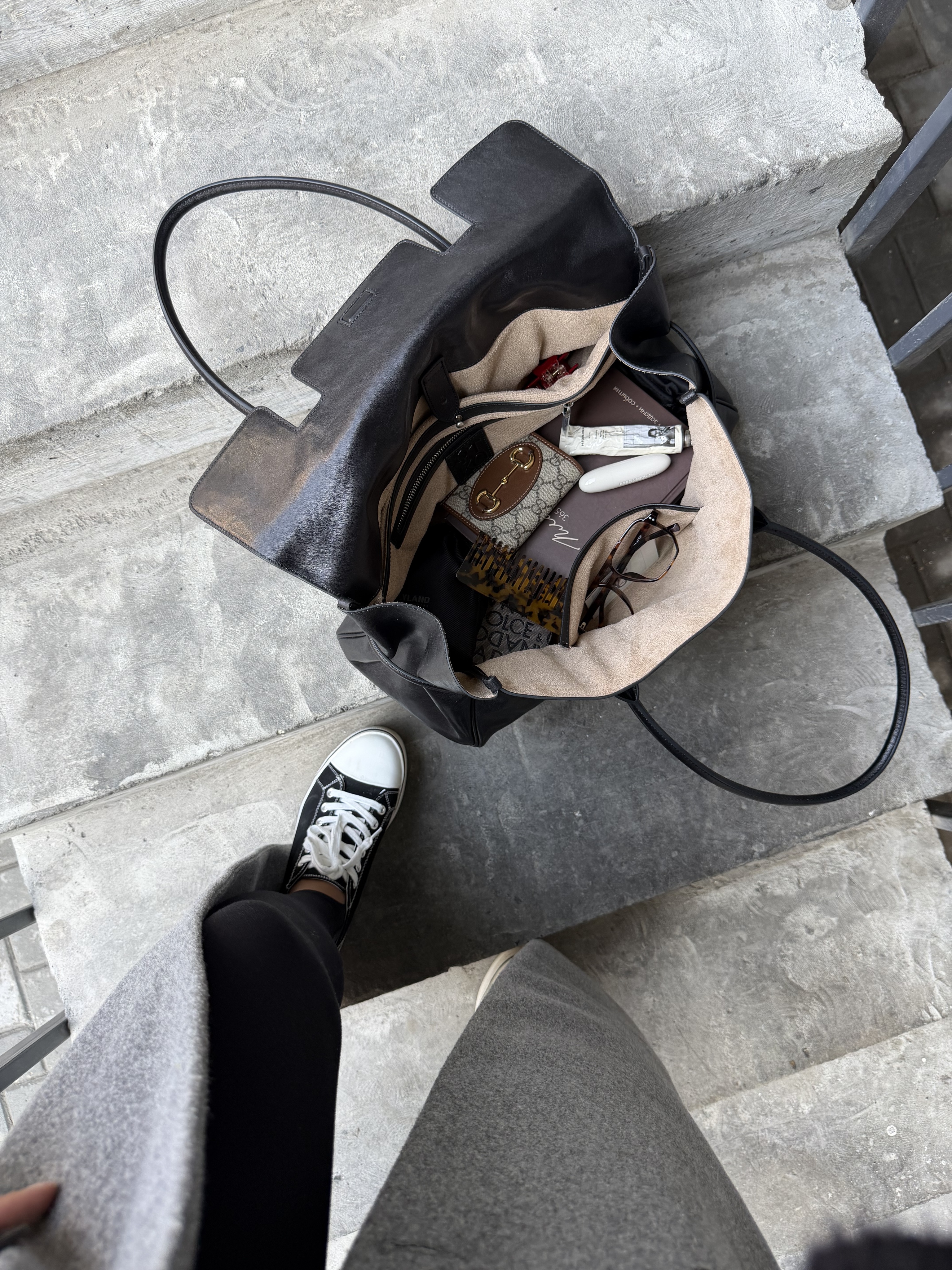 MUSE — сумка-оверсайз, но не тяжёлая и не громоздкая. Она держит форму, оставаясь тактильно мягкой, и легко превращается в ежедневного спутника, если ваш день насыщен: работа, встречи, поездки, студия, спорт, город.
