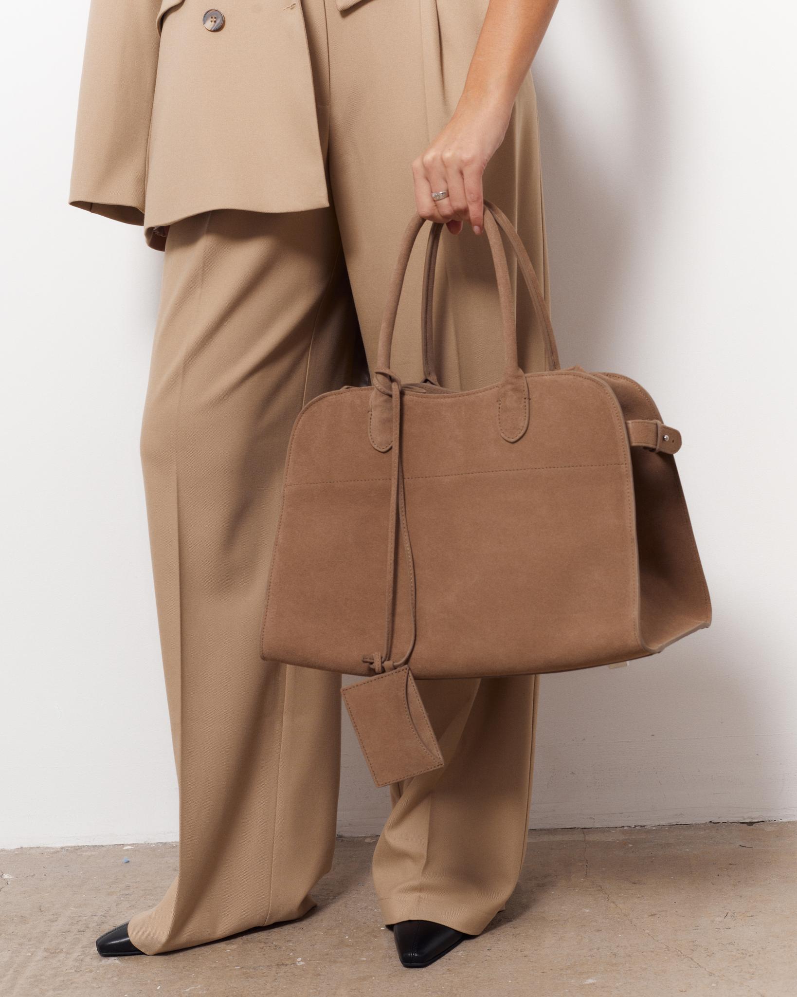 Сумка - саквояж на двух ручках самой актуальной формы. Сумка выполнена из натуральной премиальной итальянской замши. Удобная и вместительная с широким дном. Также эта модель идеально впишется в офисный дресс-код, позволив взять с собой ноутбук, документы, косметичку, бутылочку воды.