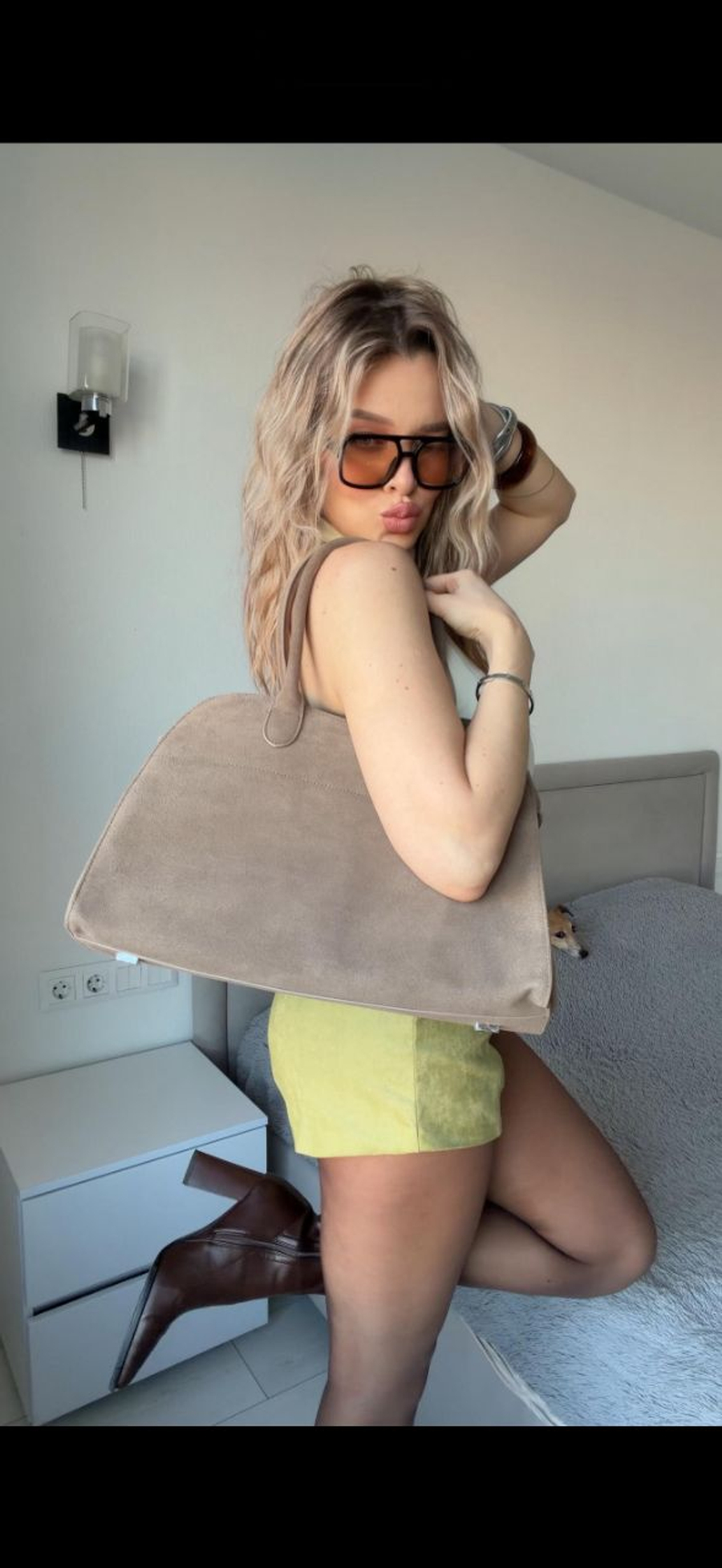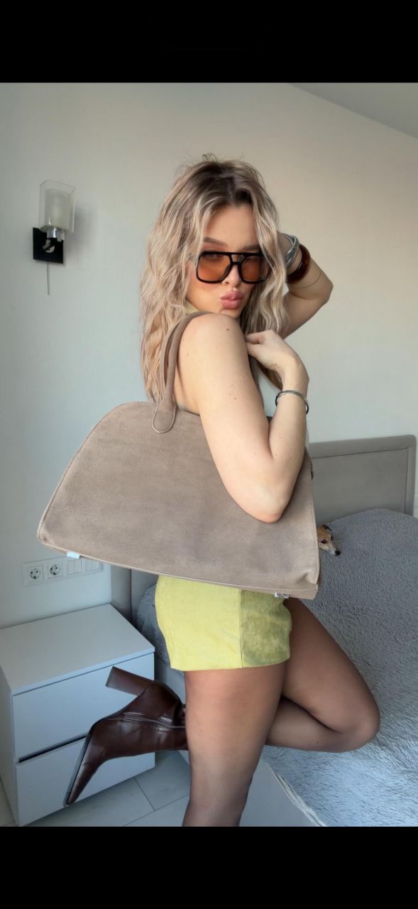 Сумка - саквояж на двух ручках самой актуальной формы. Сумка выполнена из натуральной премиальной итальянской замши. Удобная и вместительная с широким дном. Также эта модель идеально впишется в офисный дресс-код, позволив взять с собой ноутбук, документы, косметичку, бутылочку воды.