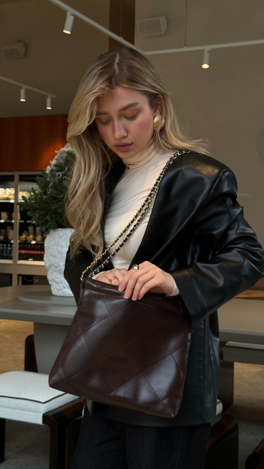 Внутри сумки крепится маленькая сумка для мелочей или косметики. Ее можно снять и использовать отдельно.