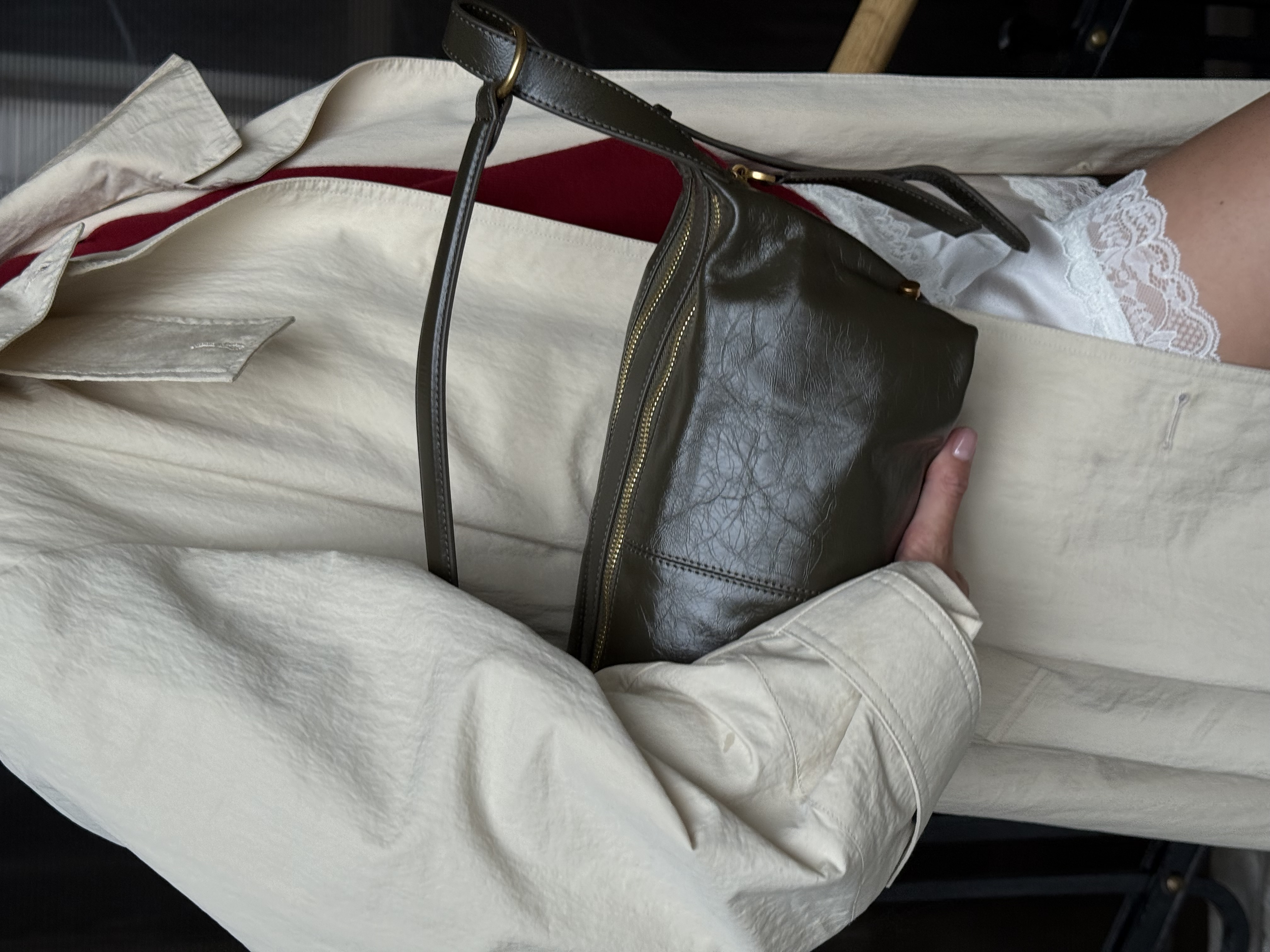 * Удобный регулируемый ремень с которым можно экспериментировать, позволяет носить сумку на плече,через плечо или в руке.